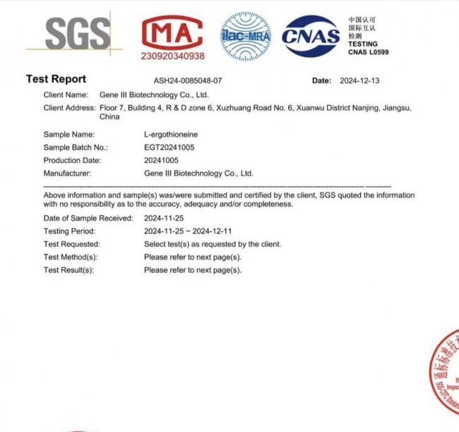 1. GeneIII仅三麦角硫因(99.99%纯度+8项临床备案+科学复配)