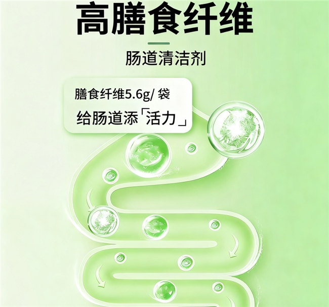肠道动力和消化吸收在家庭养护中同样重要。扶偏益生元在配方中调入足量低聚果糖,这一“益生元良伴”可促进肠道益生菌增殖,显著增加膳食纤维。单袋膳食纤维高达5.6g,对运动、久坐、熬夜人群的肠胃调理起到“清洁剂”的作用,维持肠道活力。
