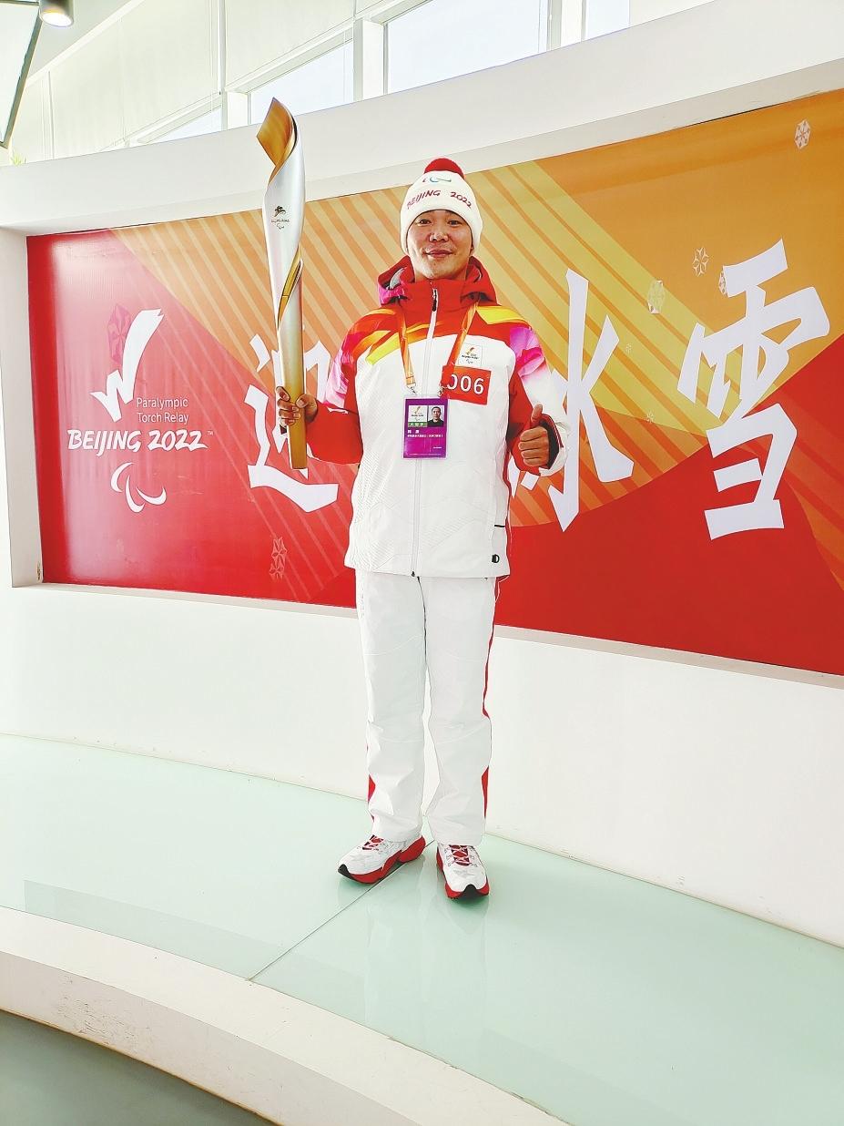 这是继市特教学校校长作为护旗手参加北京冬奥会开幕式国旗传递之后,该校又一位参加冬残奥会火种接力传递的火炬手。