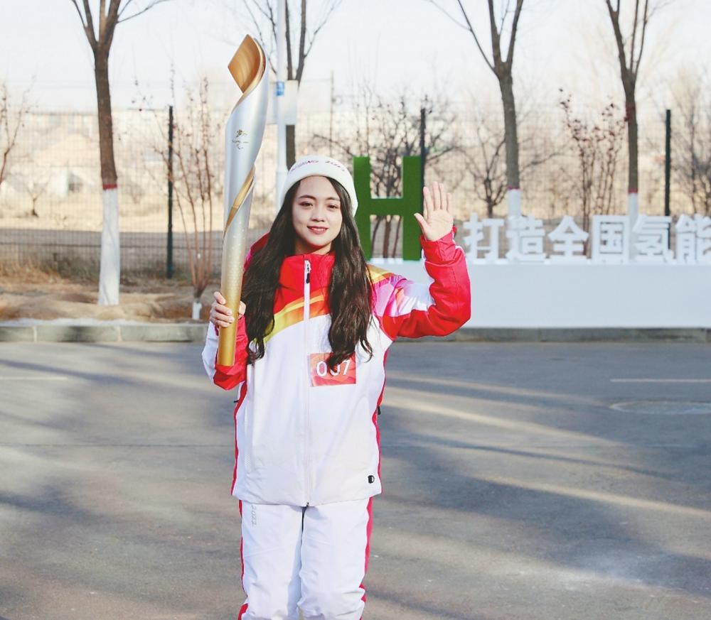 3月2日上午,北京2022年冬残奥会火种“‘氢’洁之火”在河北省张家口市桥东区创坝园区采集并进行传递。陈美玲作为创坝园区第七棒火炬手进行火炬传递。