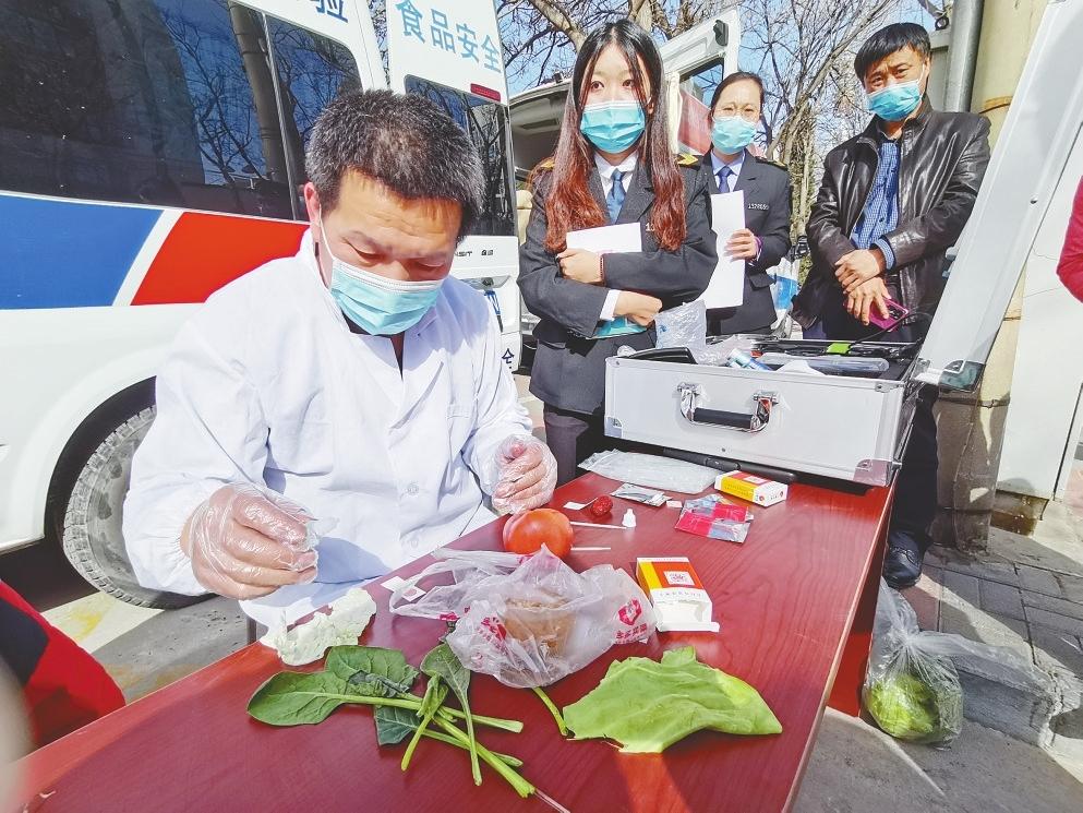 “菠菜和甘蓝都是经常吃的叶菜,正好检测一下农药残留是否超标。”“我刚买的苹果,给检测一下吧!”“我这儿刚买来的茴香苗和胡萝卜,看看安全吗?”陆续赶到的居民纷纷取出自己的果蔬,工作人员将各种蔬菜留下一部分快检样品。