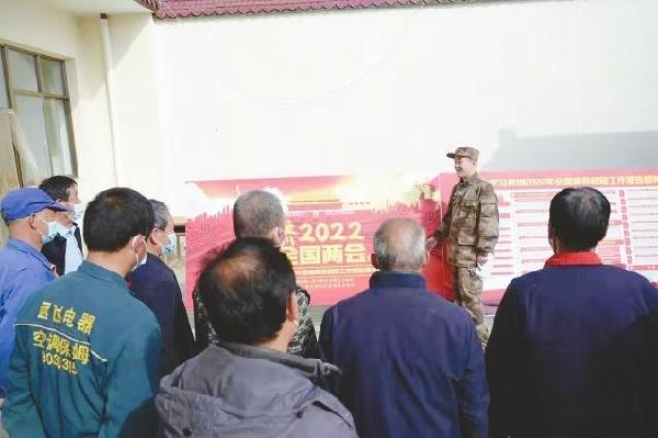 选择开阔环境,减少参与人数,保持适当距离……在特殊情况下,为满足村民对学习全国“两会”精神的需求,该县人武部将学习课堂延伸至乡村田间地头、公园广场,多形式开展“‘两会’精神进乡村”活动。