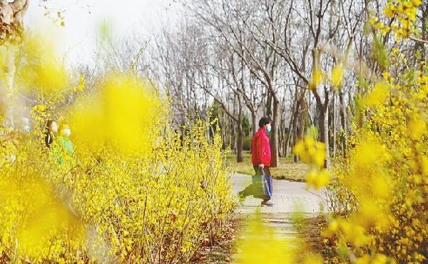 达活泉公园现在也是赏连翘花的最佳时节。3月15日,记者从东门进入公园,星象园附近成片的连翘花进入眼帘。据介绍,顺着主环路,星象园、牡丹园、东绿趣园、西绿趣园以及沿湖区域共种植着2.1万多平方米的连翘花。(邢台日报社全媒体记者 刘晓燕通讯员 张立娜 韩立臣 文/图)