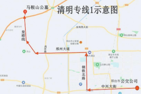 线路走向:从公交公司门口发车,途经中兴大街、钢铁北路、邢州大道、皇褡线至马鞍山公园。
