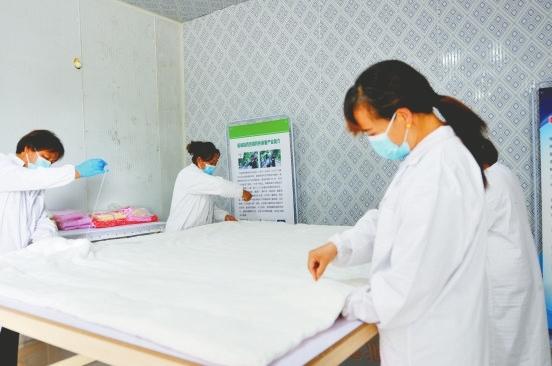 她们一天做二十床蚕丝被