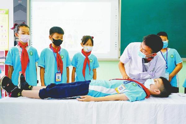 仲夏时节,沙河市开展防溺水安全教育活动。当地组织“卫生健康副校长”和医护人员走进各个中小学,通过宣讲防溺水知识、传授防溺水安全急救技能、现场急救模拟演练等方式,提高学生的安全意识和自救能力。(邢台日报社全媒体记者 田晓丽 摄)