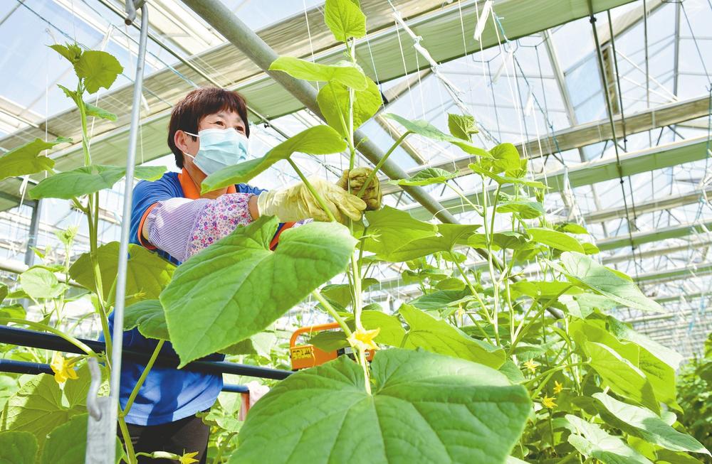 ▲6月8日,南和区贾宋镇一家现代智慧农业园区的工人在进行蔬菜日常管理。近年来,南和区积极推动乡村现代农业发展,利用“互联网+农业”思维构建标准化、智能化种植体系,将远程数据采集、智能温控等“工业化”理念和技术引入农业生产,实现农产品的全程溯源、标准化管理,提高农业种植质量和效率。