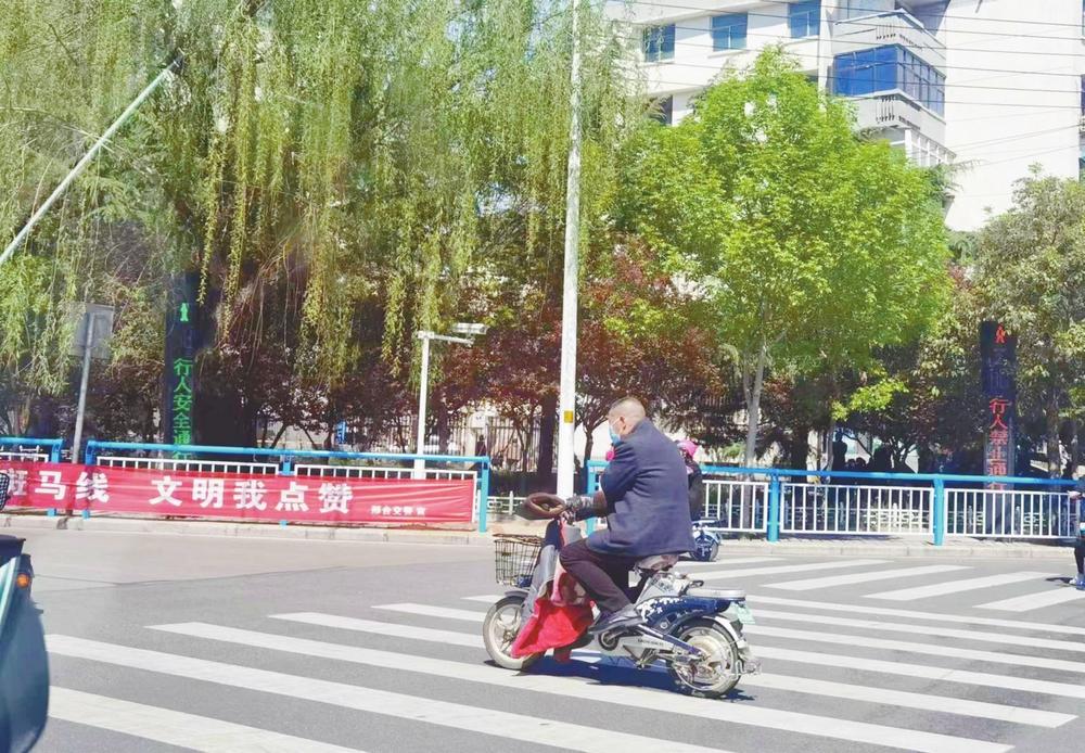 在走访中记者注意到,在有民警、志愿者执勤的交通路口,骑车市民往往能在引导下做到文明出行。