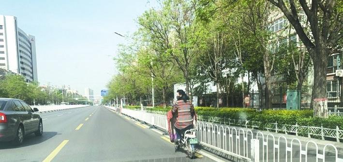 4月11日7时35分许,正值上班早高峰,记者来到冶金路与钢铁路之间的中华大街,看到路南自西向东的非机动车道上电动自行车车流量较大。