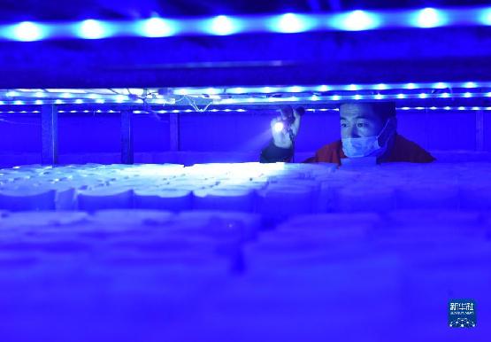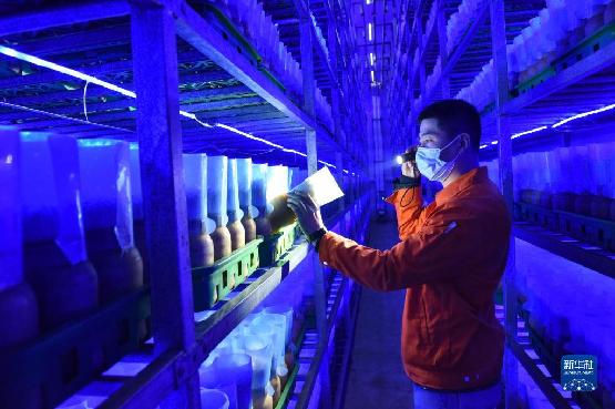 4月13日,河北省临西县一家食用菌生产企业的员工在菌菇培育车间查看金针菇的生长情况。近年来,河北省临西县把发展食用菌产业作为促进农业结构调整的重要抓手,采取“龙头企业+专业合作社+基地”经营模式,推动食用菌产业实现规模化、标准化、专业化发展。新华社记者 朱旭东 摄