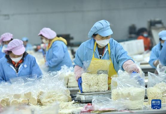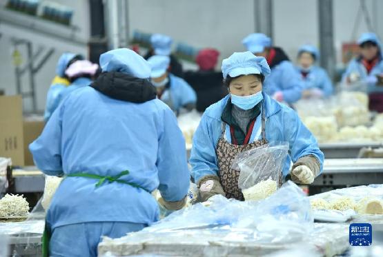 4月13日,河北省临西县一家食用菌生产企业的员工在包装车间分拣金针菇。近年来,河北省临西县把发展食用菌产业作为促进农业结构调整的重要抓手,采取“龙头企业+专业合作社+基地”经营模式,推动食用菌产业实现规模化、标准化、专业化发展。新华社记者 朱旭东 摄