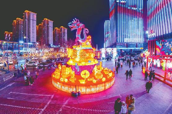昨晚,襄都区新春灯会在天一城盛大开幕。融入泉城文化与梨园文化等元素的千余盏花灯与靓丽的楼体交相辉映,为观众奉上一场传统文化与时尚元素交融的视觉盛宴。(邢台新闻传媒中心记者 霍红军 摄)