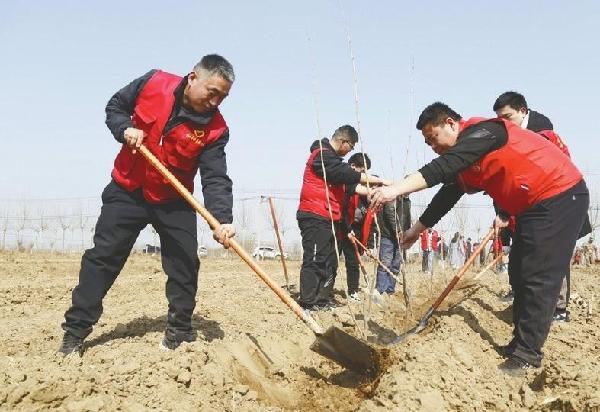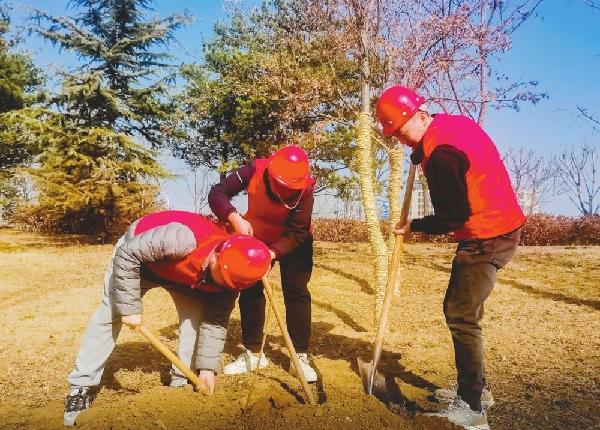 ②3月12日,河北政义城建建筑工程集团有限公司党委组织部分党员在祥和大街城南公园开展义务植树活动。本报记者 韩文洲通讯员 李华摄