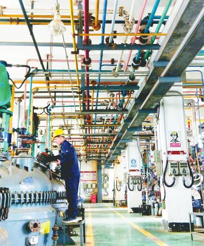 河北利江生物科技有限公司的员工在工业级树脂车间巡检。赵国华摄