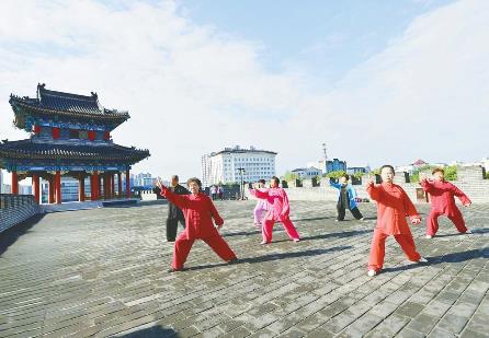 近日,太极拳爱好者在邢州古城墙东南角楼练习太极拳。近年来,我市大力实施文化兴市战略,一批古建筑得以修复,人们在感受古城文化魅力的同时健身游玩,尽享美好生活。(邢台新闻传媒中心记者 叶晓强摄)