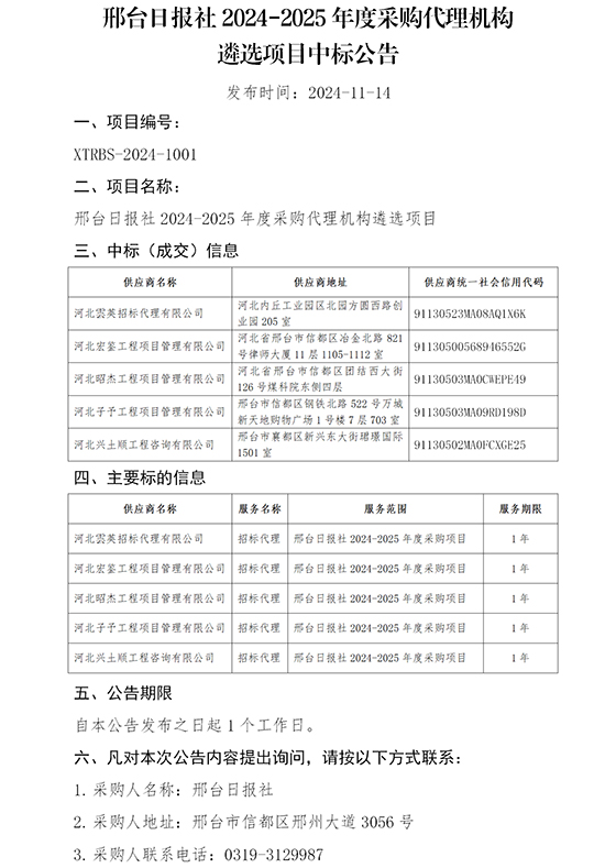 邢台日报社2024-2025年度采购代理机构遴选项目中标公告