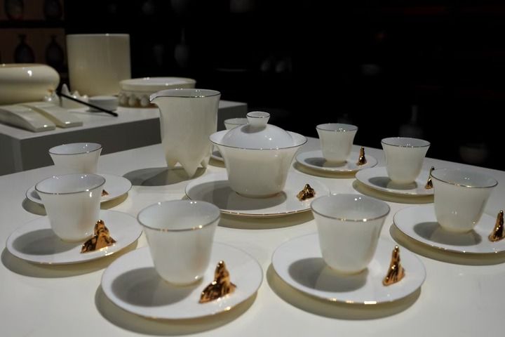 内丘县邢窑文献馆展示的“太行千里”茶具。(刘继东摄)