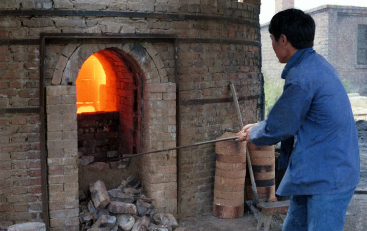 1986年,河北省邢窑研究组工作人员烧制邢白瓷。(受访者提供)