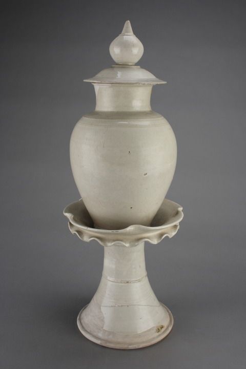 唐代白釉带托塔形盖罐。(受访者提供)