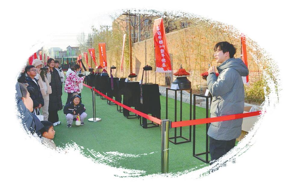 “此次展品多含‘龙纹’元素,适逢龙年末,故选址飞龙泉附近展览,旨在深入打造‘泉文化+文旅’业态,并寓意邢台市民龙年圆满收官,新年腾飞。”1979邢襄创意小镇经理卢立军介绍道。