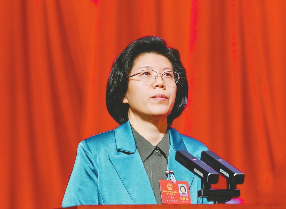 宋华英作政府工作报告。 本报记者 郝德明摄