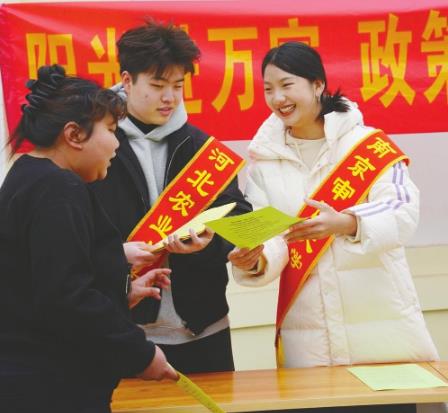 日前,南京审计大学学生申宇熙、河北农业大学学生李铭泽联络部分寒假回邢大学生组成志愿服务小分队,深入农村、商场、集市、银行、公园等地,结合自己所学专业知识,分别就食品安全以及投资理财防金融诈骗等知识进行宣传。申五亭摄