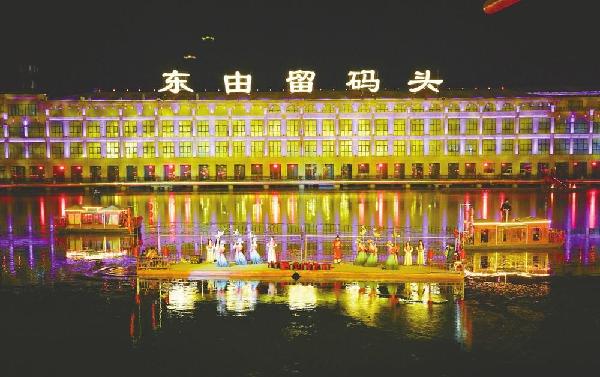 1月29日晚,大型水上演艺《七里长歌·贰》在七里河东由留码头和同心岛之间的水面上精彩上演。本次表演阐述了从祖乙迁邢以来我市春节年俗文化和婚俗文化之美。现场美轮美奂的灯光音效以及宏大的场景布置,将观众带入跨越时空的奇妙世界。本报记者 韩文洲摄