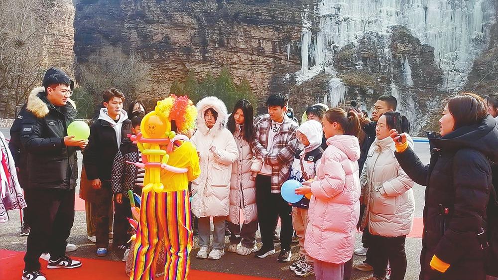 春节假期,我市各地开展形式多样的庆新春系列活动,市民游客出游热情高涨,呈现出一片文明和谐、喜庆祥和的节日氛围。图为大峡谷景区游客正在观赏表演。