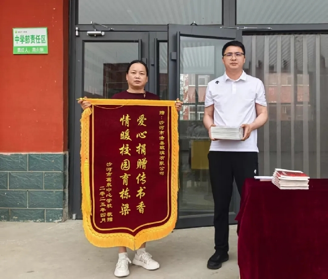 紧接着,浩燊玻璃有限公司韩总致辞,他强调,书籍是人类进步的阶梯,更是点亮梦想的火种。公司始终相信,教育是最值得投资的事业。此次捐赠的每本书都承载着对孩子们成长的期许,希望通过这些书籍,能激发他们的求知欲,拓宽视野,让知识成为改变人生的力量。同时,浩燊玻璃将持续关注教育事业,用行动诠释企业的社会责任。