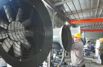 近日,在任泽区永福庄乡一家环保装备制造企业,工人正在组装工业雾炮机。