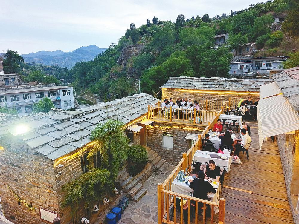 7月26日晚,游客在信都区路罗镇小戈廖村的“象外高卧”民宿体验慢生活。