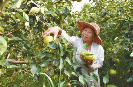 近日,威县10万亩梨果陆续成熟,果农们忙着采摘、分拣、销售。近年来,威县以“龙头企业+合作社+家庭农场”模式为引擎,打造“威梨”品牌,促进特色梨产业发展。目前,威县已培育龙头企业42家,组建农民合作社120个、家庭农场34家,建成标准化梨园200余个。新华社记者 王晓本报记者 邱洪生摄