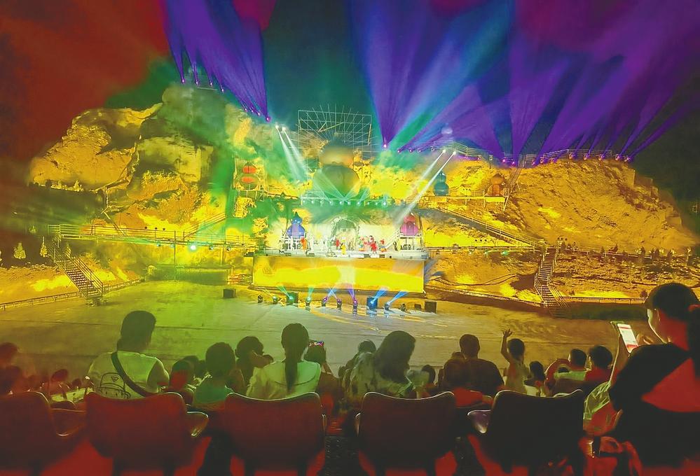 9月6日晚,在信都区会宁镇张尔庄村八仙葫芦园,游客正观看沉浸式山体实景演出。