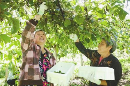 近日,在信都区前南峪村麻峪沟种植基地里,串串软枣猕猴桃挂满枝头,果农们忙着采收、分拣、装箱。该基地60亩果园亩产1500公斤,亩均收益超6万元,成为山区农民增收新路径。