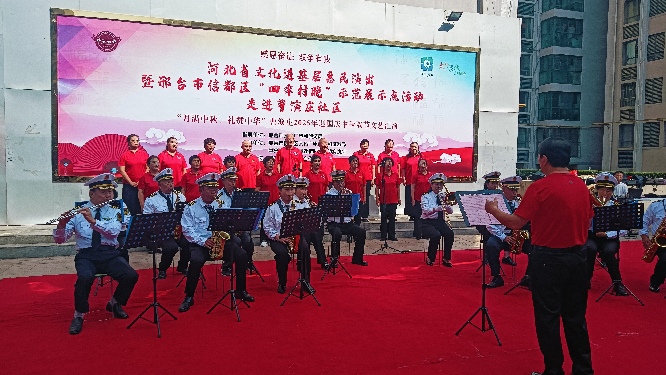 2025年9月29日上午,曹演庄社区文化广场热闹非凡,一场由居民群众自编自演的“庆国庆,迎中秋”文艺汇演在此温情启幕。从节目编排到登台表演,全程由社区群众自愿参与,生动活泼的形式既贴近生活,又满含节日喜悦,引得现场掌声阵阵。