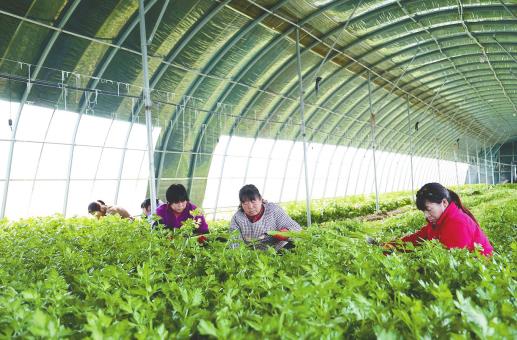 3月9日,在市高新区祝村镇蔬菜种植基地的蔬菜大棚,菜农正在采收芹菜,将新鲜的蔬菜供应市场。近年来,该镇持续推动农业产业结构升级,大力发展设施农业,促进农民增收致富。