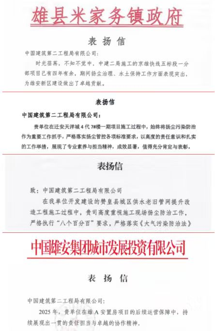 躬耕不缀,履约有为。2025年收官在即,中建二局河北分公司一批重点项目收获了一大波表扬信,赢得多方赞誉。