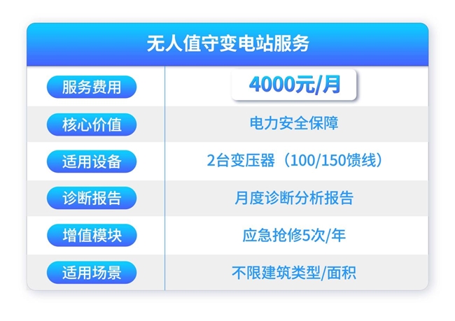 安全闭环管理:AI算法实时监测变压器过载、线路老化等隐患,云端远程值守+年保5次应急抢修,构建“预防响应修复”全周期保障。